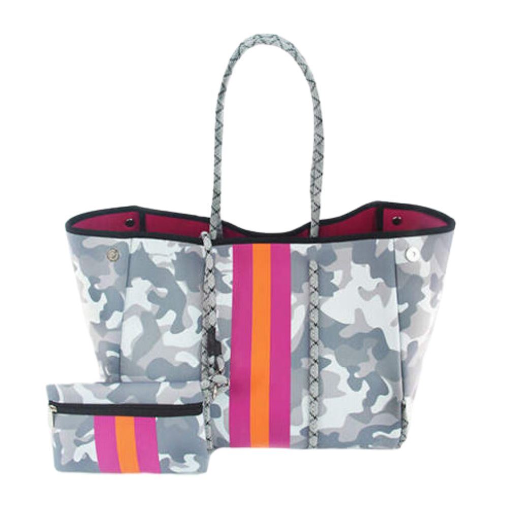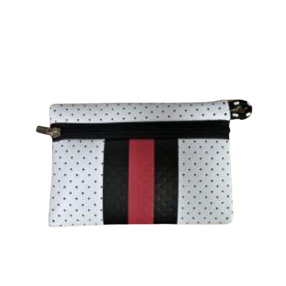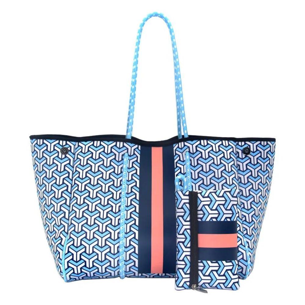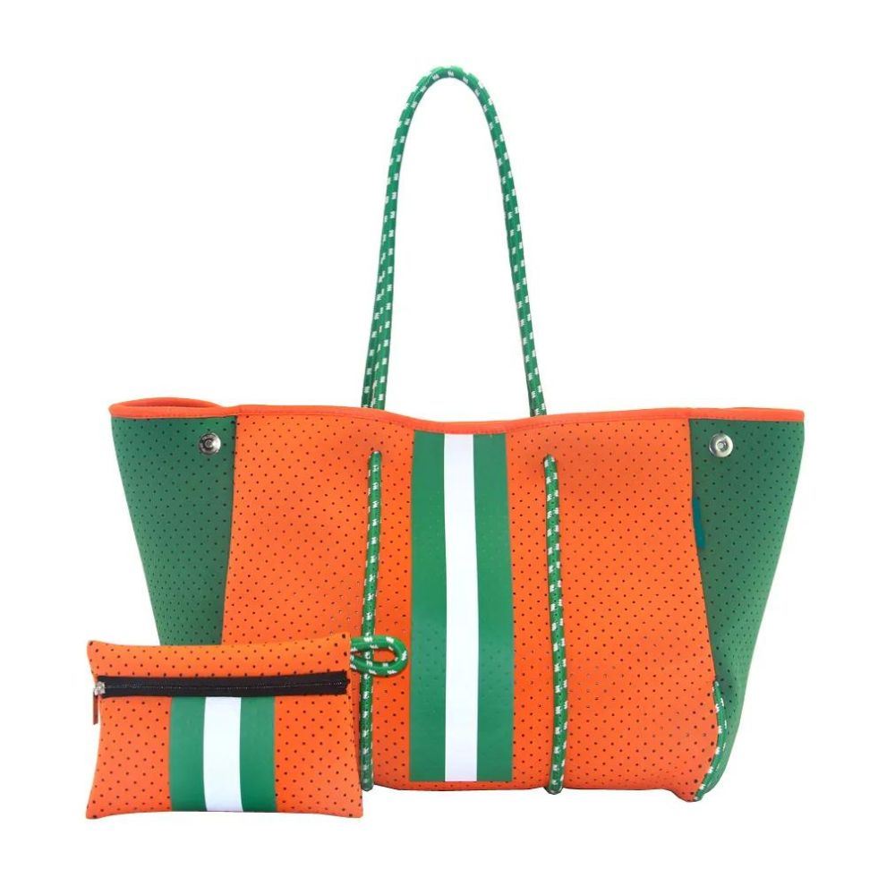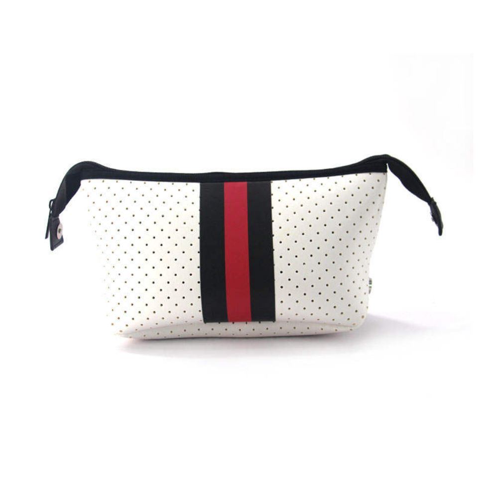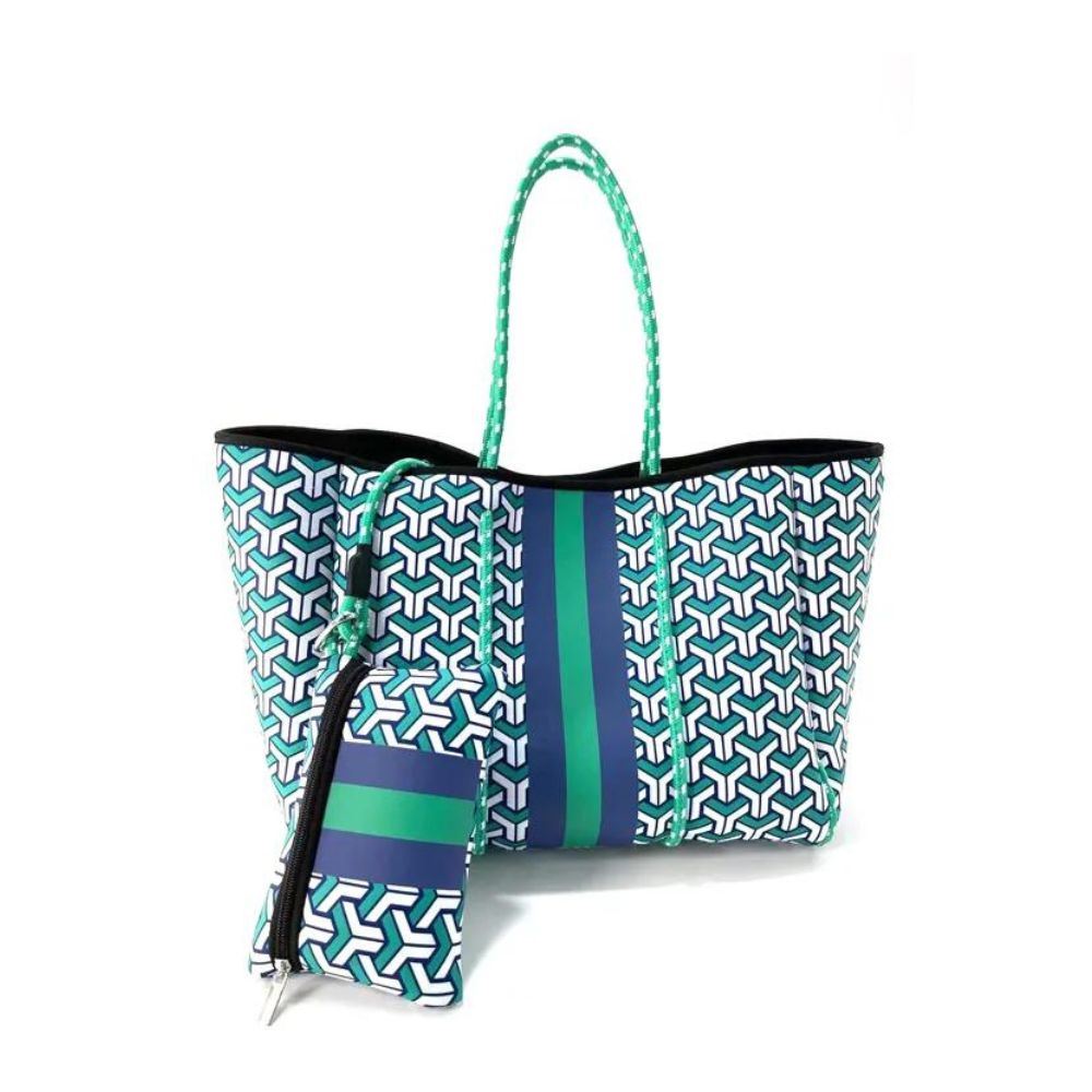 Moderno bolso elaborado en neopreno. Práctico, liviano y resistente. Es perfecto para acompañarte todo el día, ya sea que lo uses para la universidad, el trabajo, el gimnasio o la playa. Viene con un estuche que podrás usar como cartuchera, para tus cosméticos o para guardar lo que prefieras.